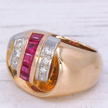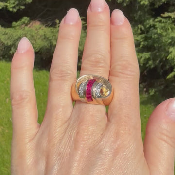 Mid Century Synthetic Ruby & Diamond Cocktail Ring, French, circa 1950