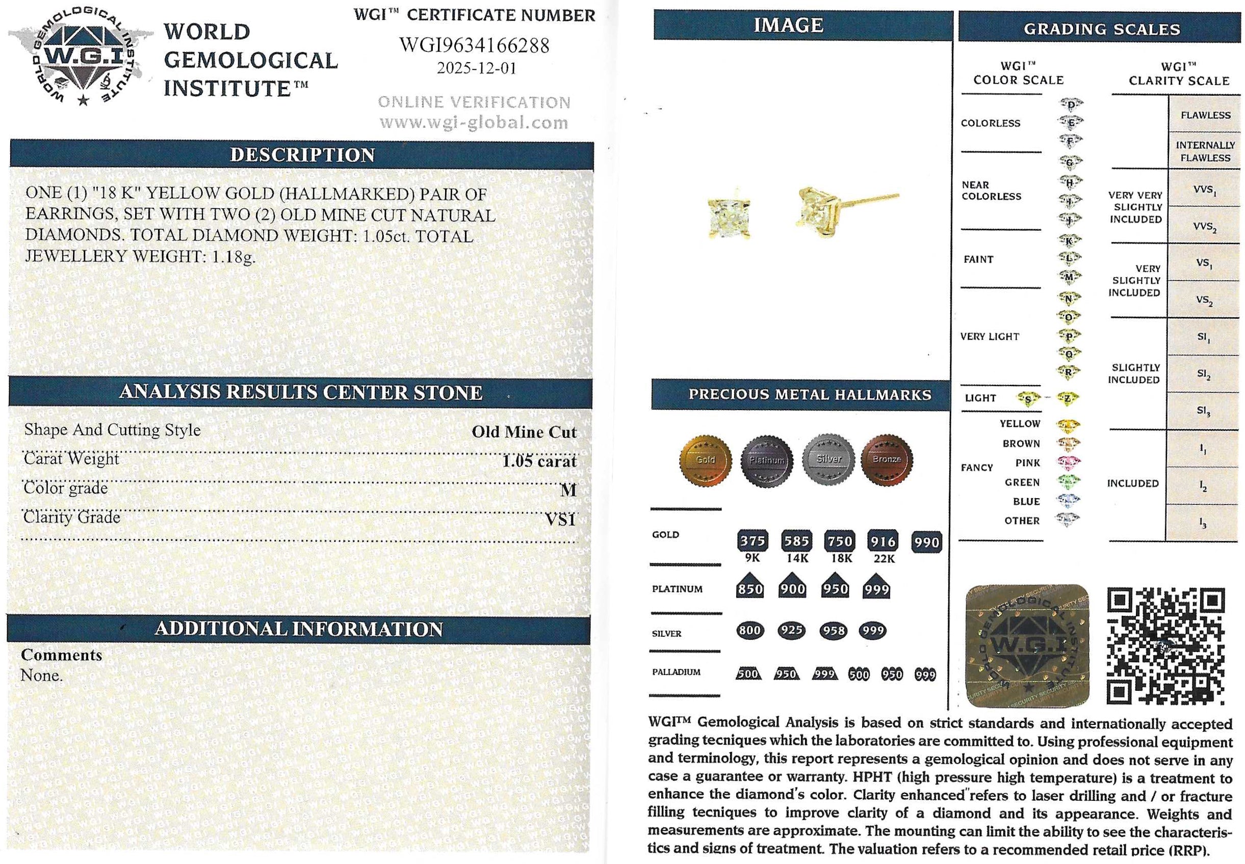[message]An amazing pair of diamond stud earrings featuring a beautiful and almost identical pair of old mine cut diamonds. These stones were cut and polished in around 1870, and have been mounted in new, four claw, 18k yellow gold settings. The stones are internally very clean, very bright, and display a subtle warm-ish glow.