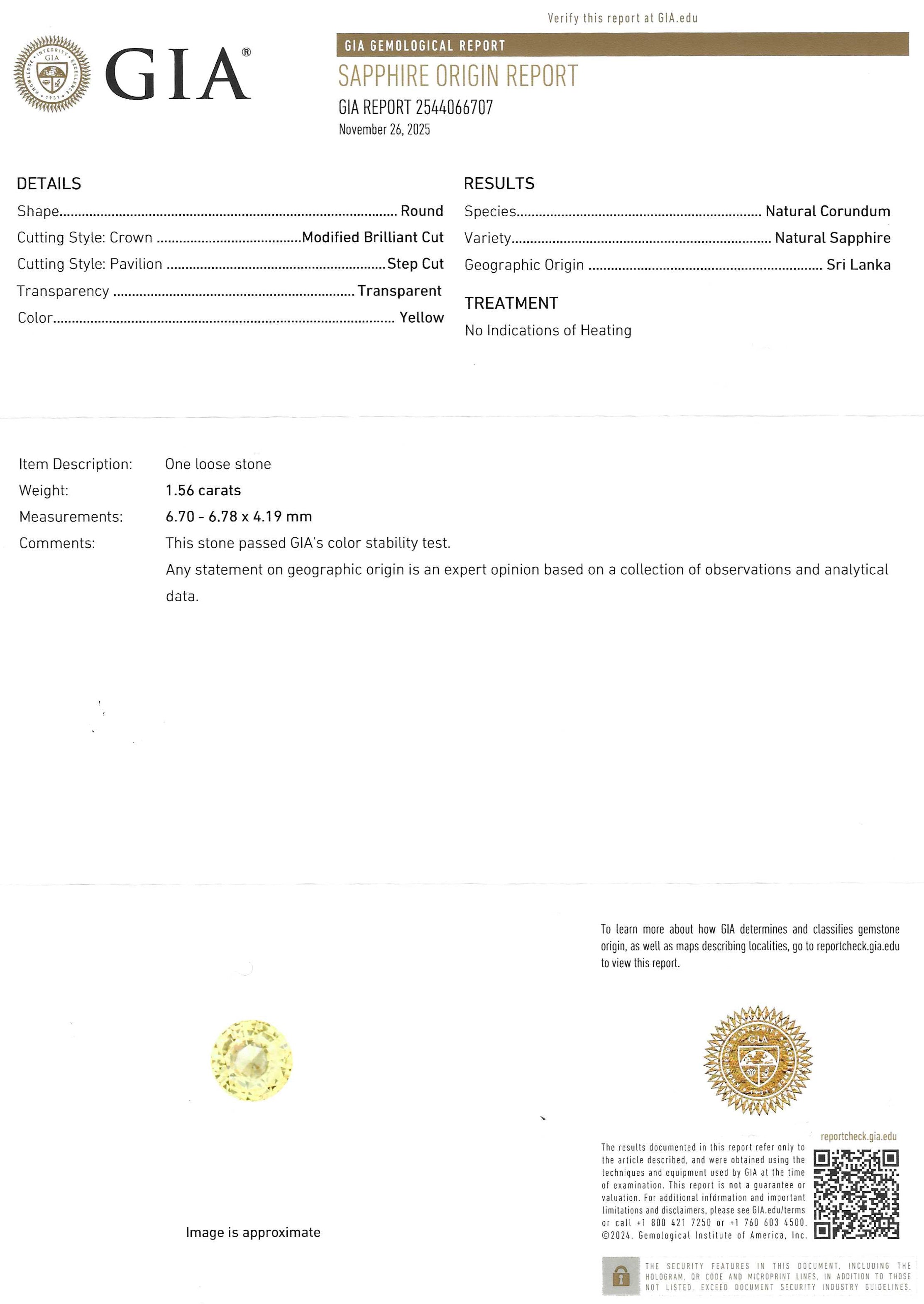 Accompanied by a GIA report stating the sapphire shows no indication of heating, and is Sri Lankan (Ceylon) in origin.
