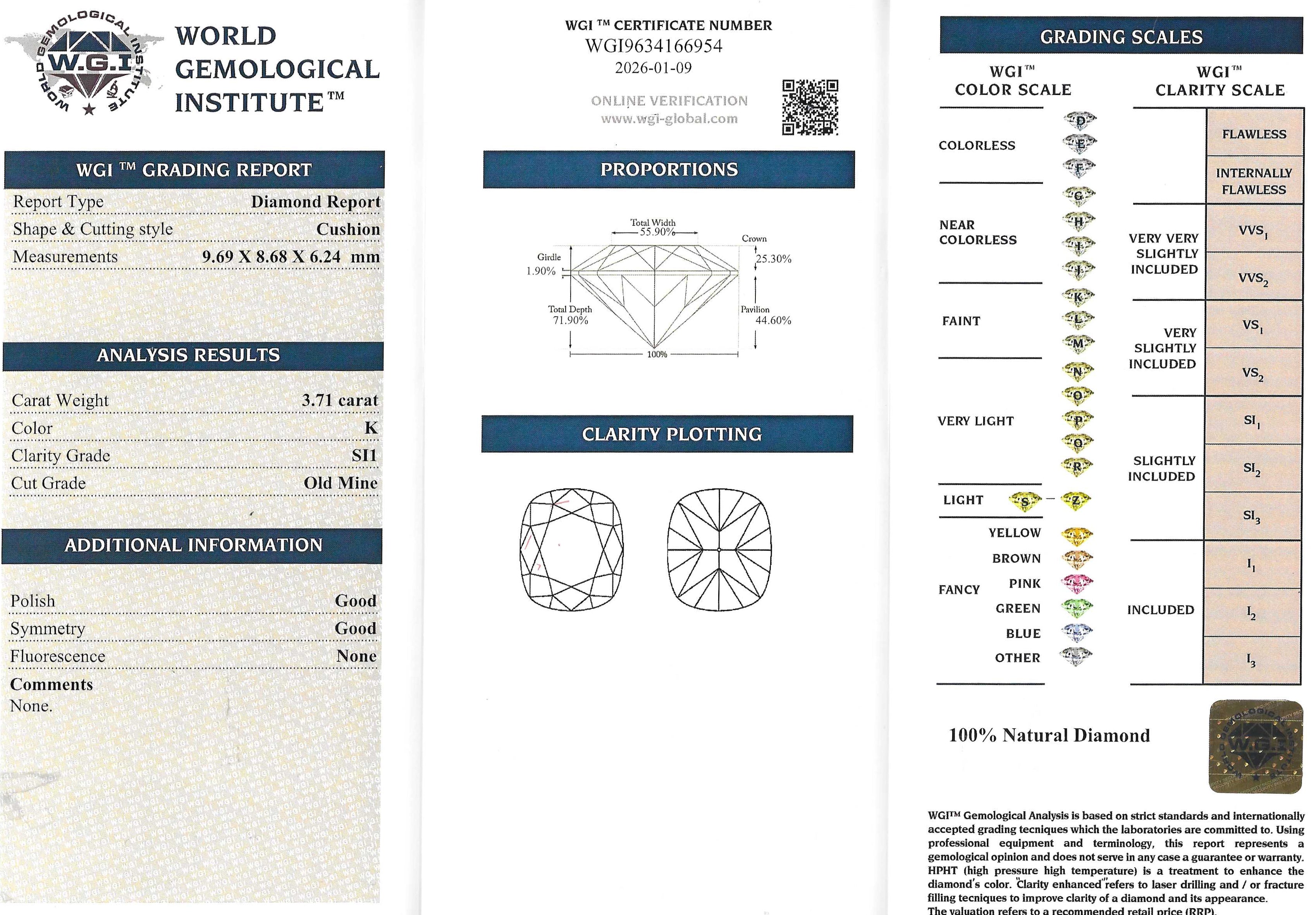 Accompanied by a diamond grading report from WGI.