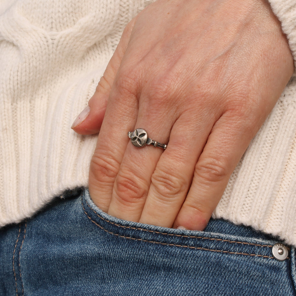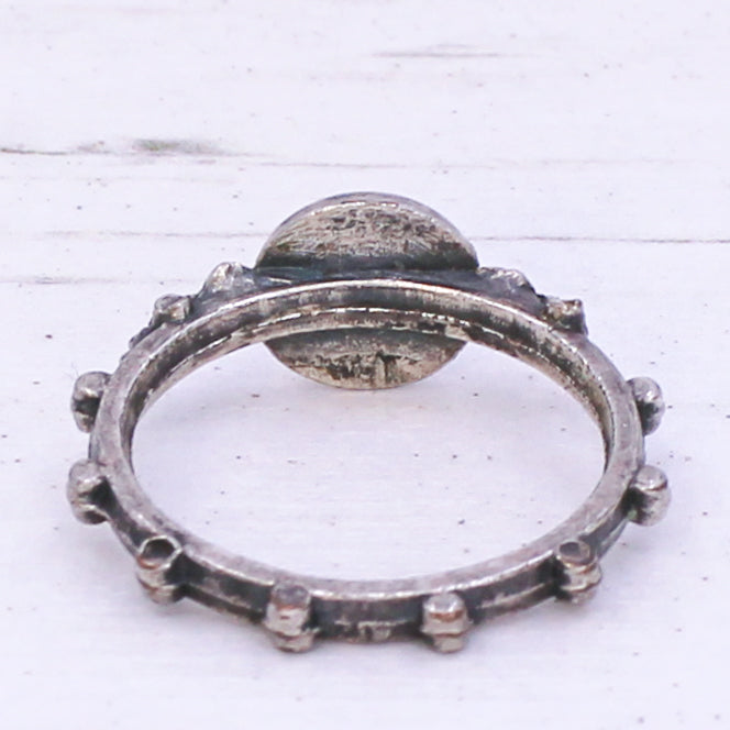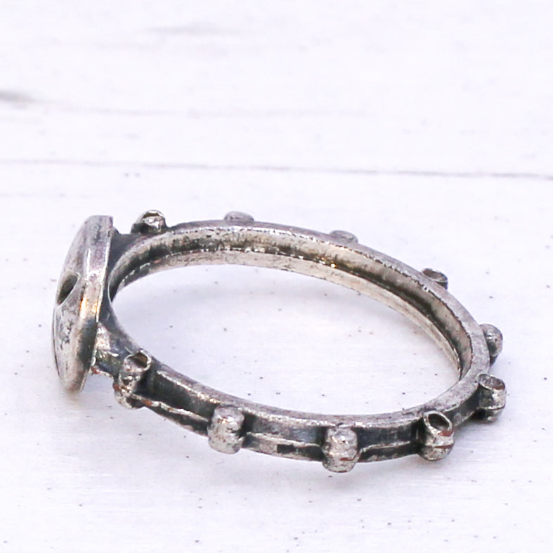 These rings were also used my those who could not read prayers. Traditionally, rosary / decade rings were worn just before the knuckle on the index finger of the dominant hand so that they could be turned easily in prayer.