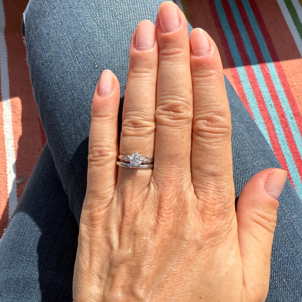 Currently UK size K 1/2, US size 5 3/8. Free sizing available.