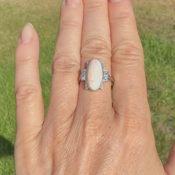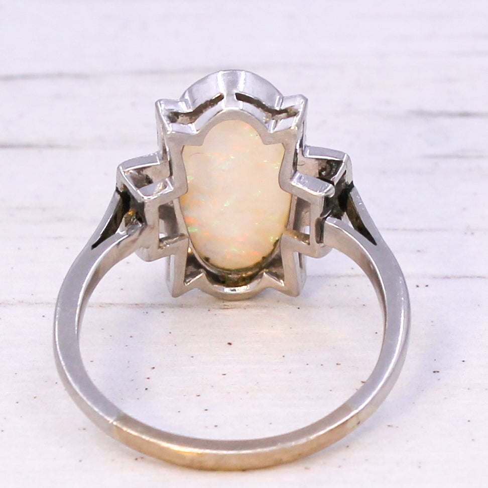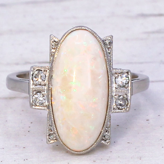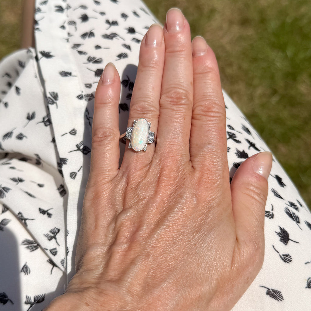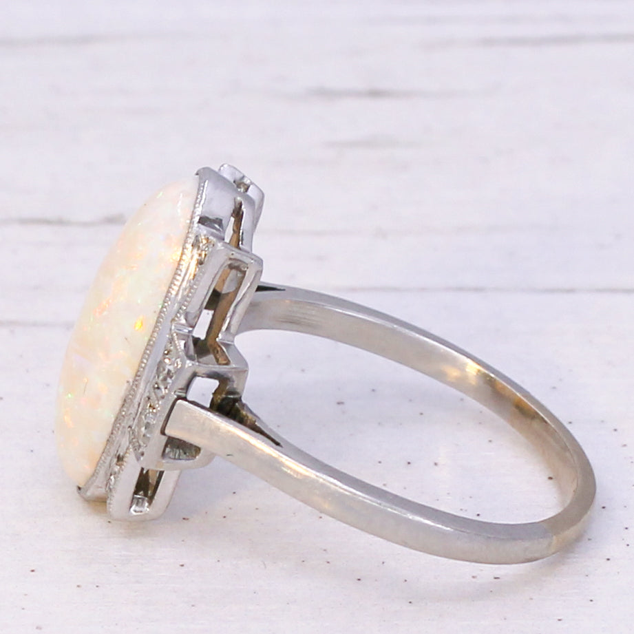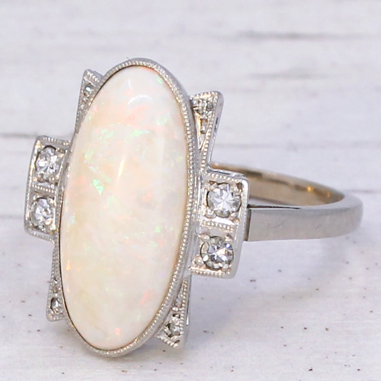 Art Deco 3.50 Carat Opal & Diamond Ring, circa 1930