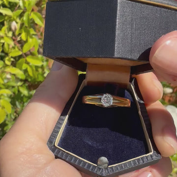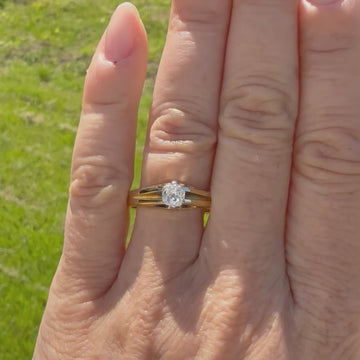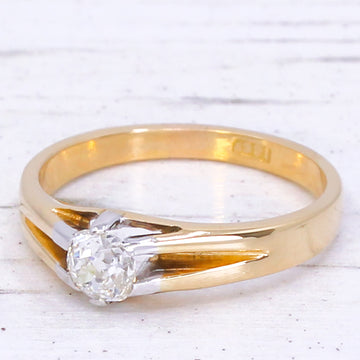 [message]A fine antique diamond solitaire ring. The high white and internally clean old mine cut diamond in the centre is secured by six platinum claws is a nicely substantial 18k yellow gold shank which splits at the shoulders. A great example of a classic British antique diamond ring.