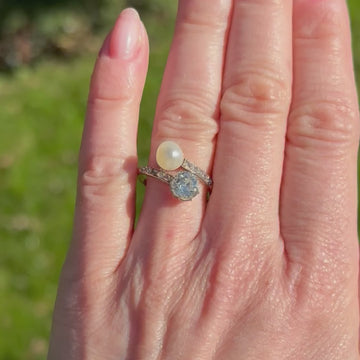 Edwardian 1.00 Carat Old Cut Diamond & Natural Pearl Crossover Ring, circa 1910