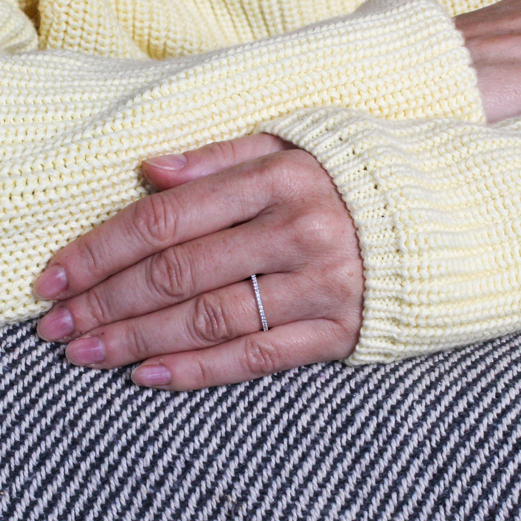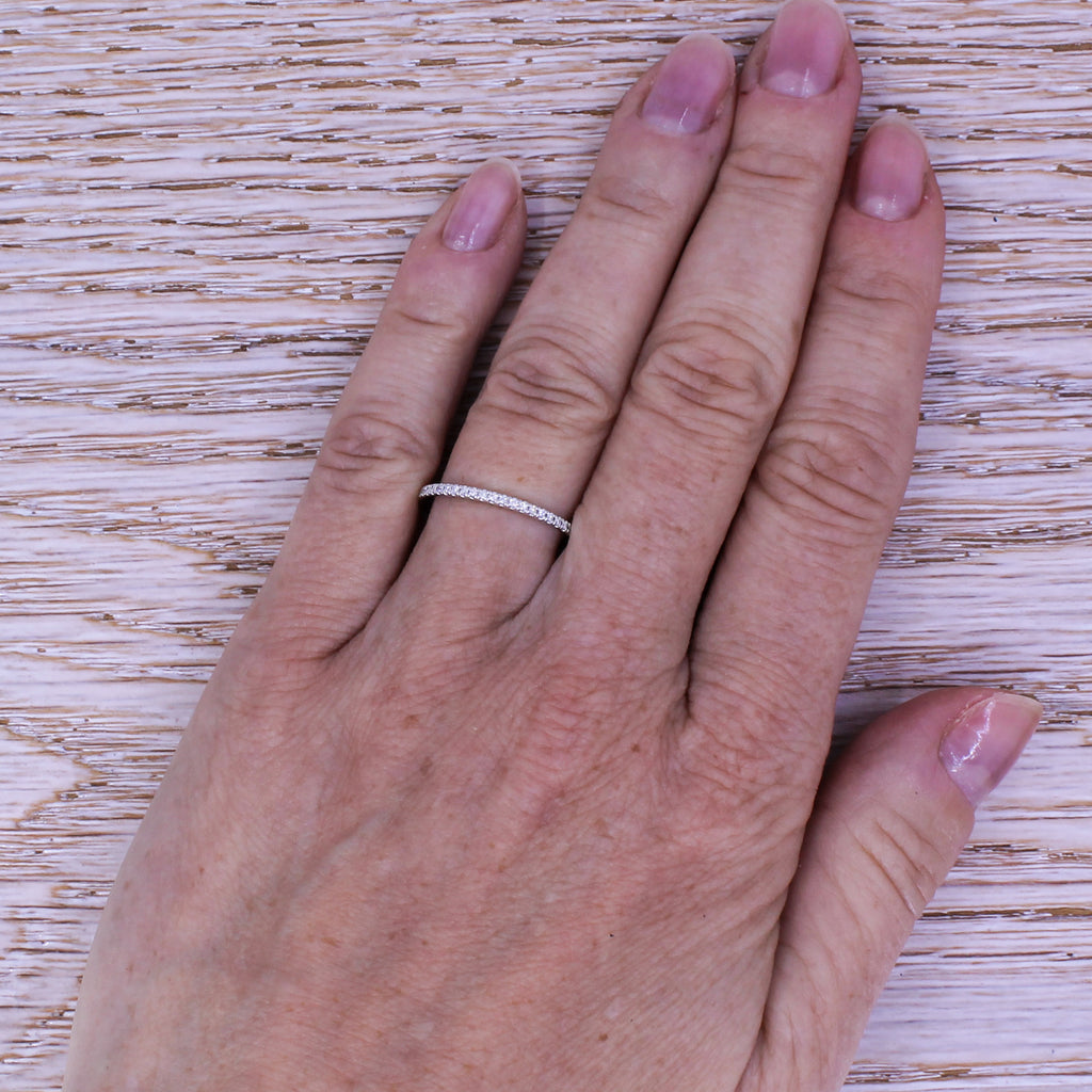[message]A wedding band which manages to be both subtle and showy. The slender profile of the ring - measuring just 1.5mm wide - means it won't dominate an engagement ring, but will still manage to provide a decent amount of fizz and sparkle.