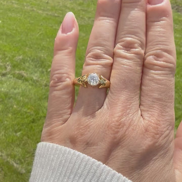 [message]A very cool vintage diamond solitaire ring. The natural old European cut diamond in the centre is impressively white and lively, and is secured in an eight-claw coronet collet, which sits between ornate trumpeting shoulders to a chunky 18k shank. Crafted in 18k yellow gold.