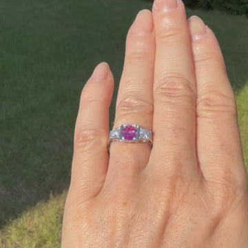 Mid Century 0.96 Carat Pink Sapphire & Diamond Three Stone Ring, circa 1960