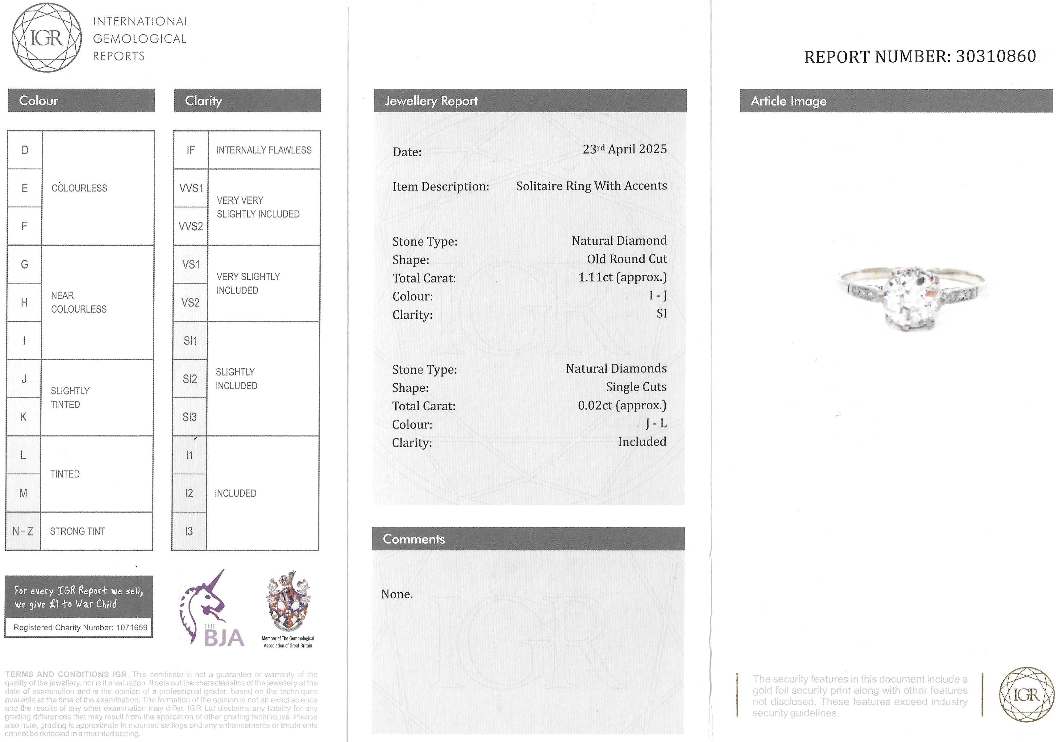Mid Century 1.11 Carat Old Cut Diamond Engagement Ring, circa 1960