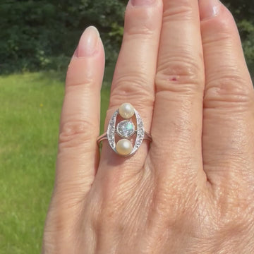 Mid Century Natural Pearl & Old Cut Diamond Ring, circa 1950