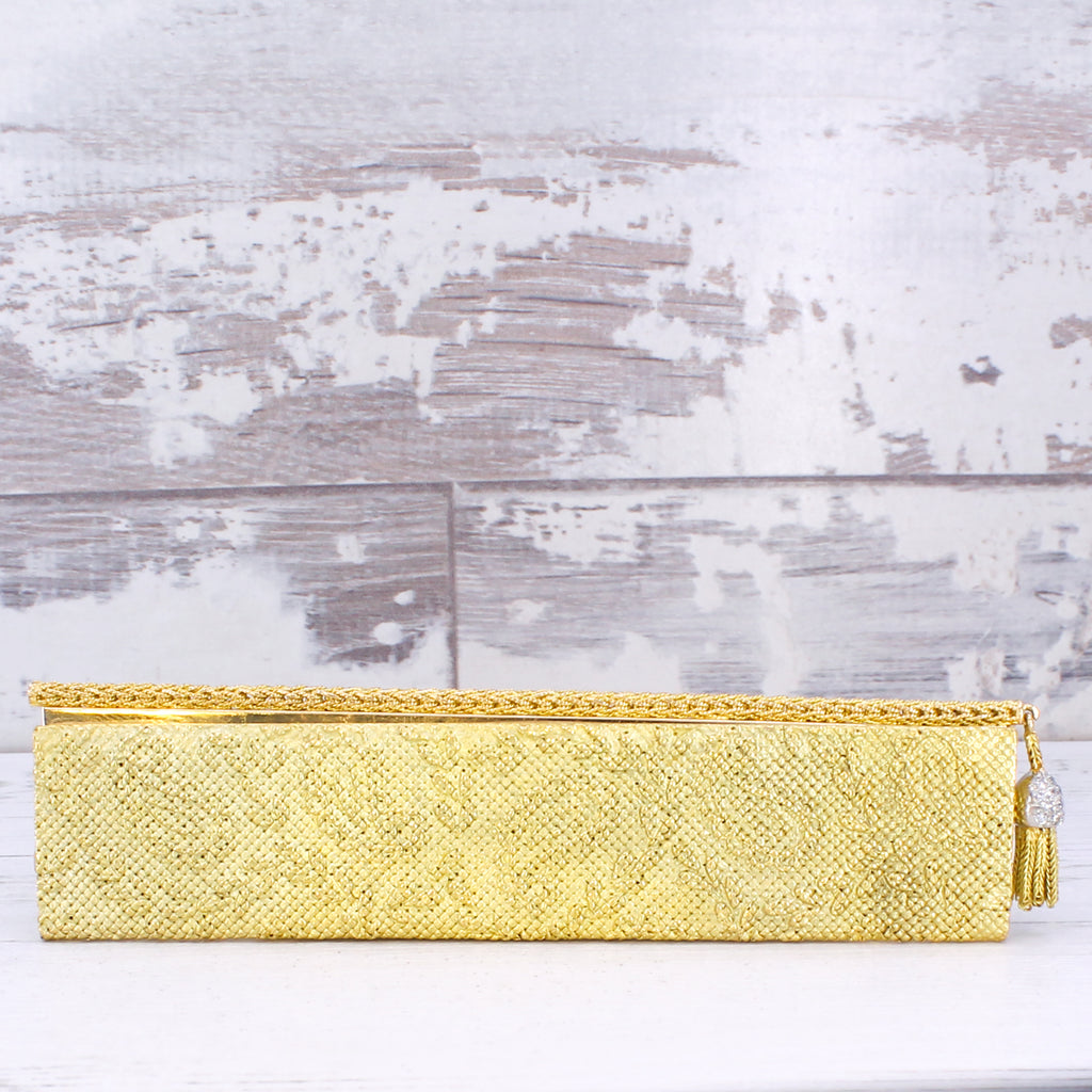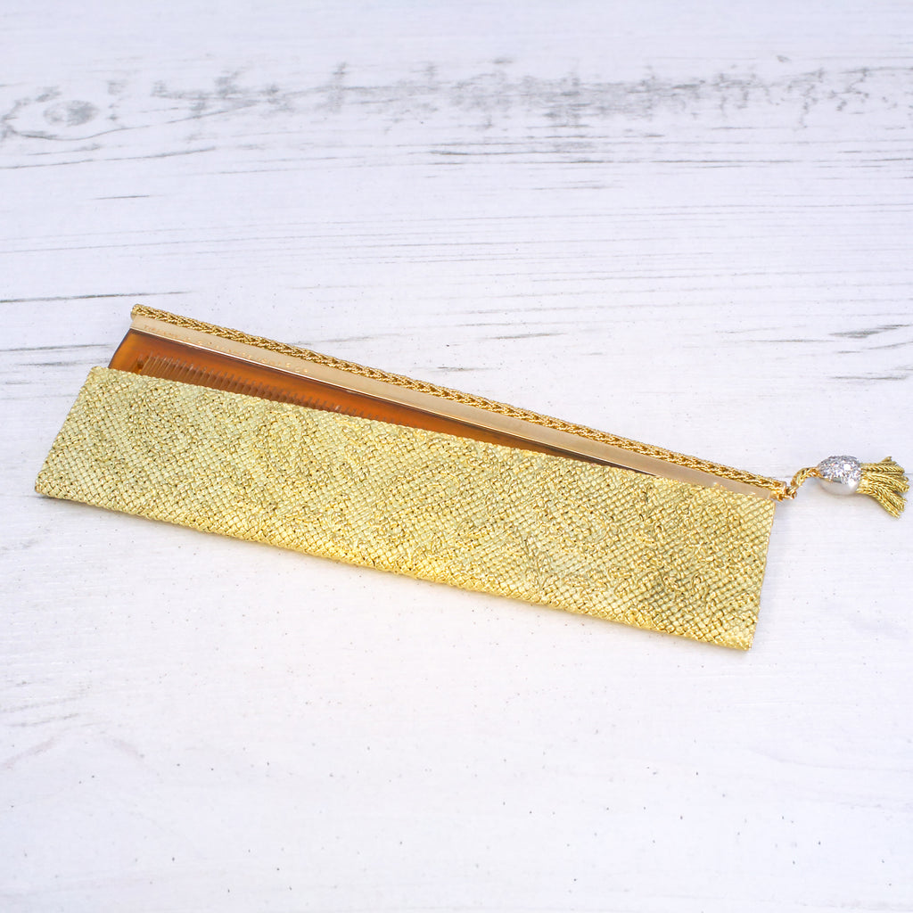 [message]A beautiful and important vintage 18k gold comb and case from Tiffany & Co. The case is a stunning piece of craftsmanship, with fine gold threads woven together (like fabric) with raised sections creating a paisley pattern.