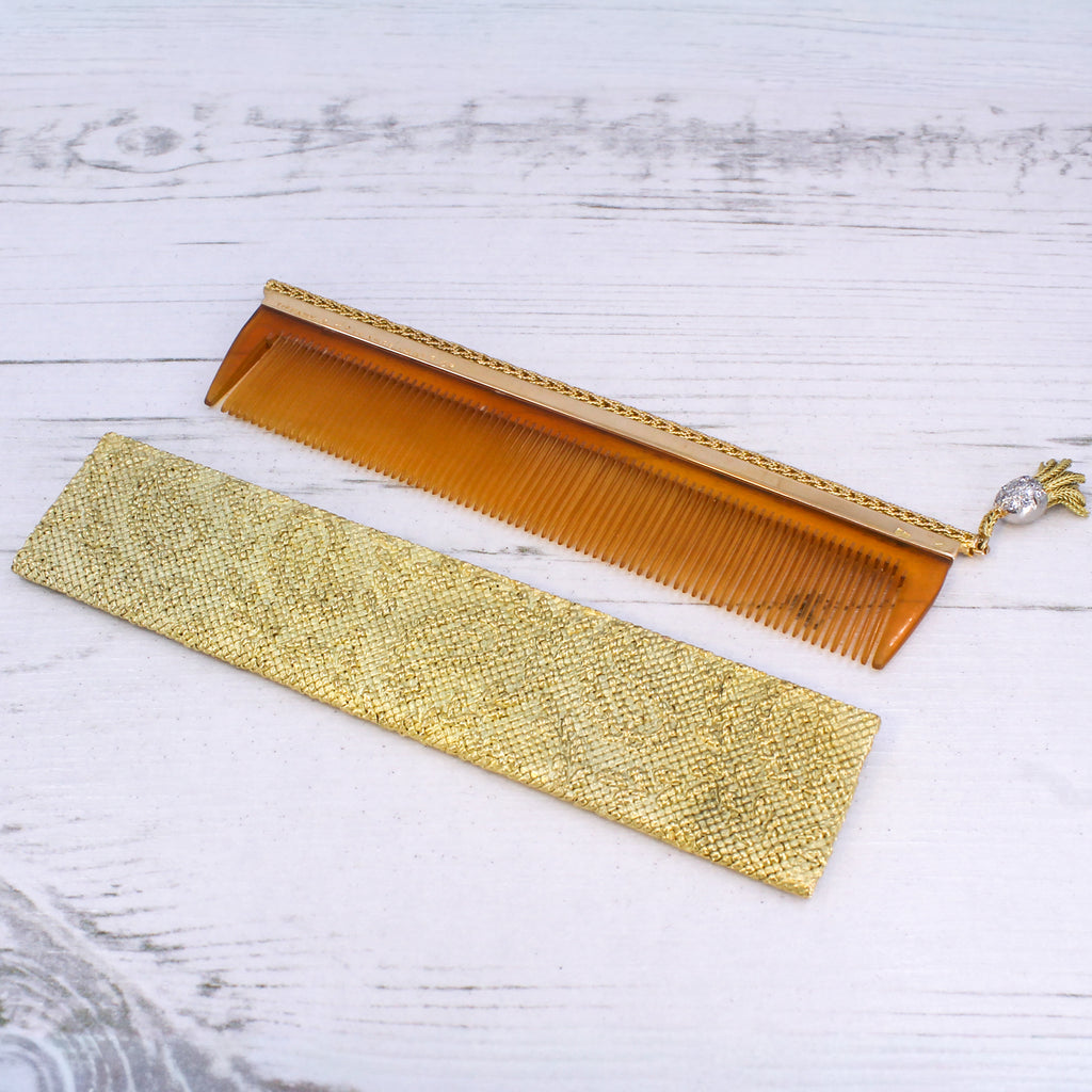 The top part of the comb is also crafted in woven gold - this time a rope design - with a white gold tassel-head set with 22 eight-cut diamonds, leading to a frayed tassel.