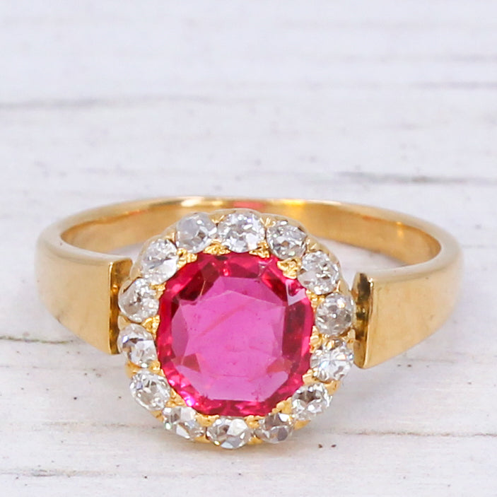 Victorian 0.80 Carat Natural Burmese Spinel & Diamond Ring, circa 1880