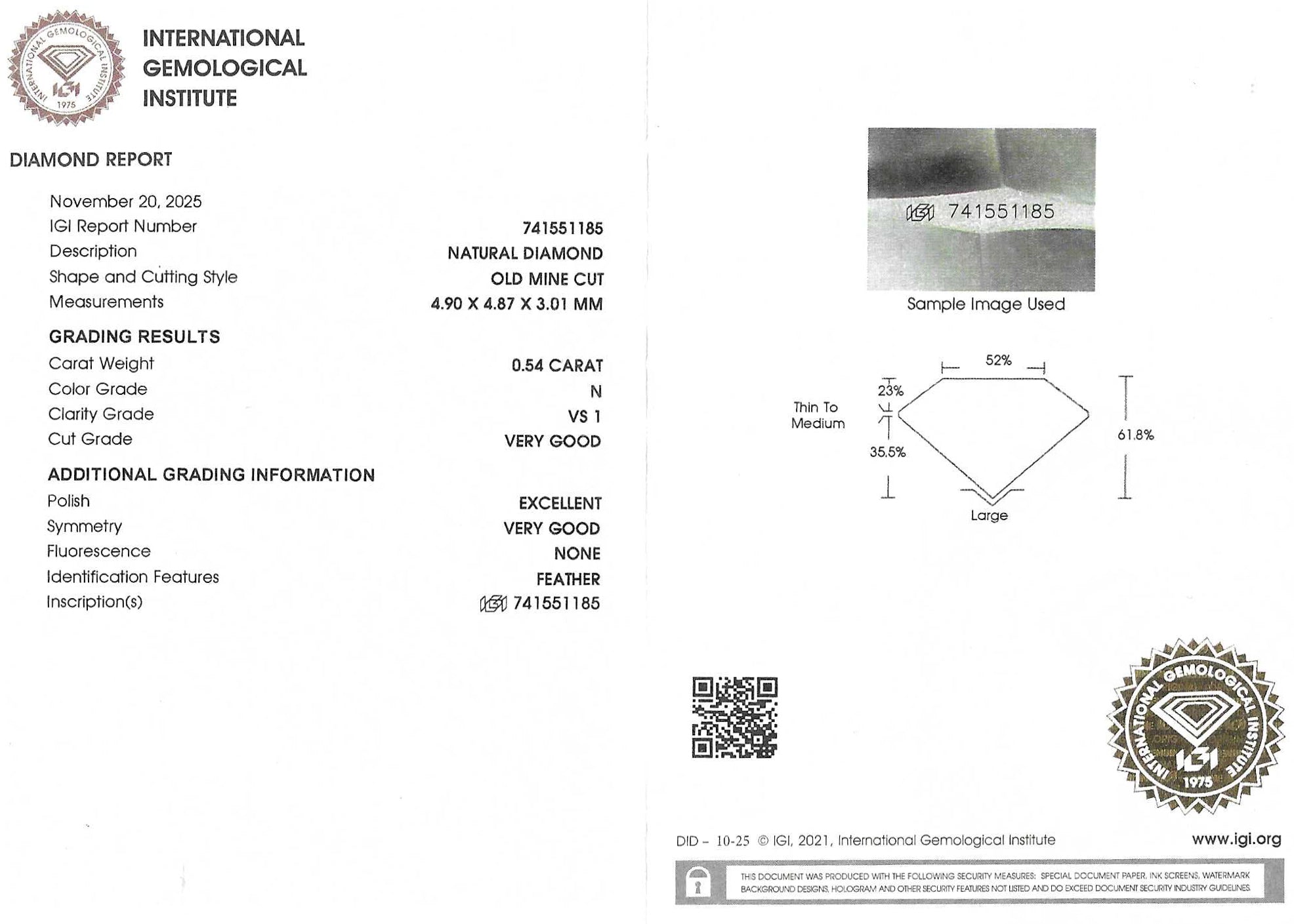 Accompanied by a Diamond Report from IGI. The diamond has been laser inscribed for added security.