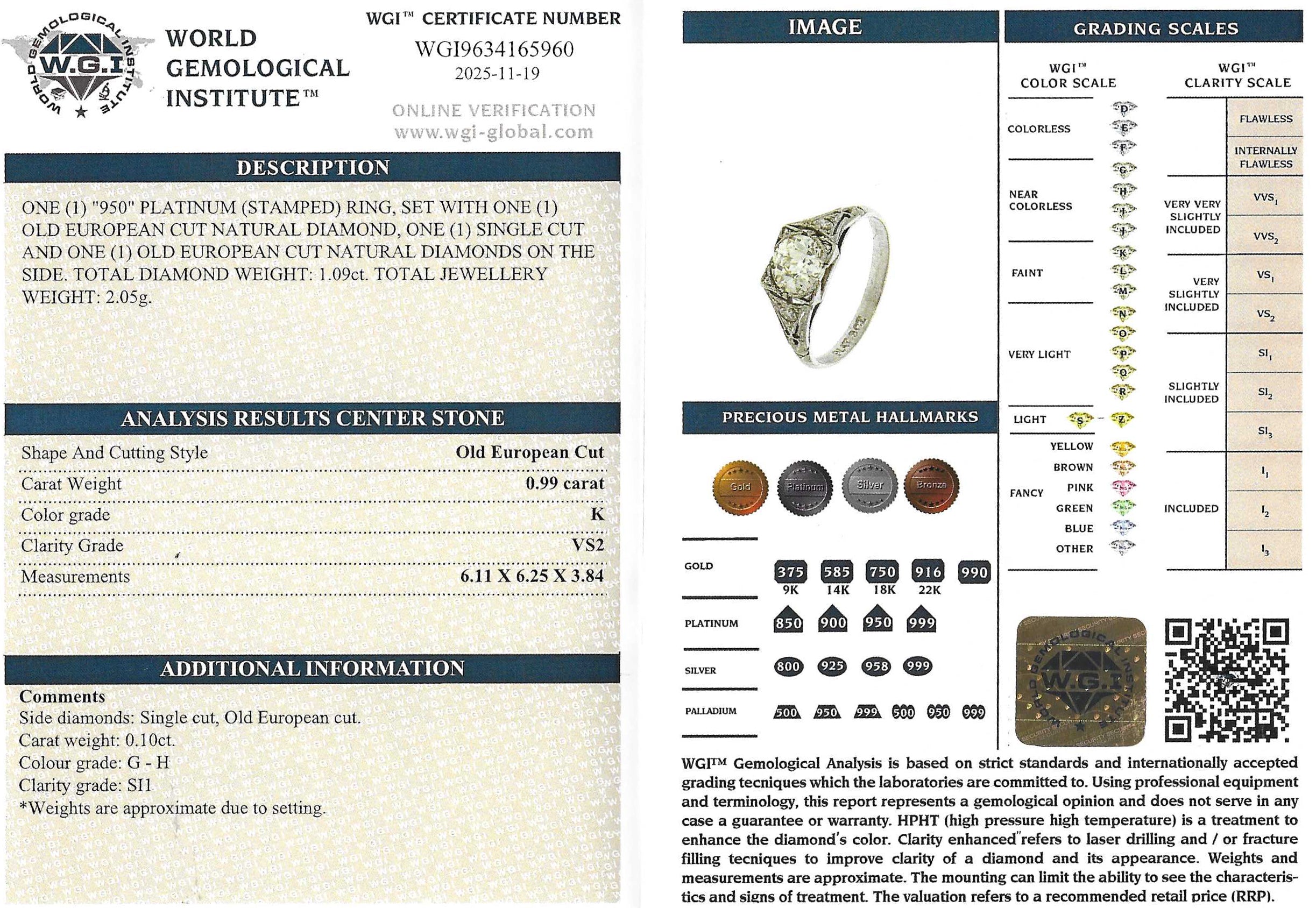 Vintage 0.99 Carat Old Cut Diamond Engagement Ring, circa 1945