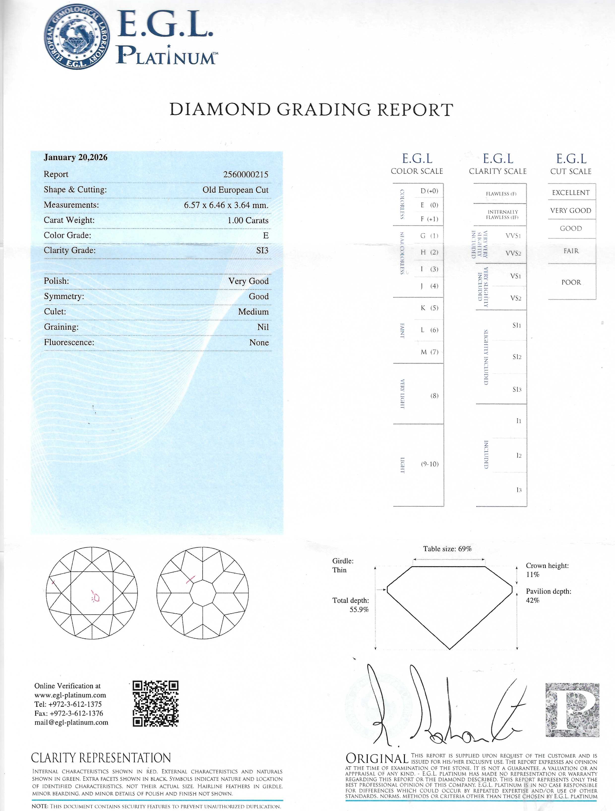 Accompanied by a Diamond Grading Report from EGL Platinum.