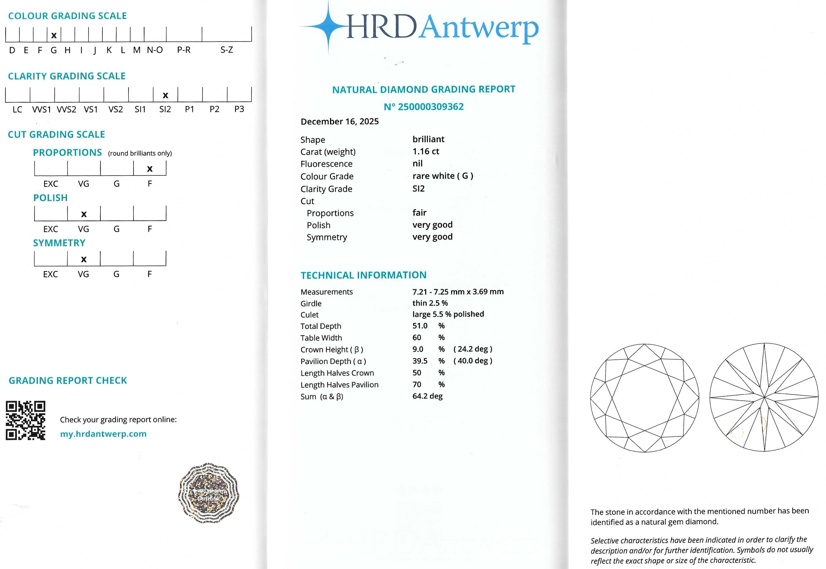 A seriously lovely vintage diamond engagement ring. The transitional cut diamond - graded by HRD Antwerp as G colour, SI2 clarity - is white, bright, and fizzing with fire and brilliance. The diamond, which spreads large for its carat weight, is secured in an eight-claw coronet collet atop a slim and tapering 18k yellow gold shank.