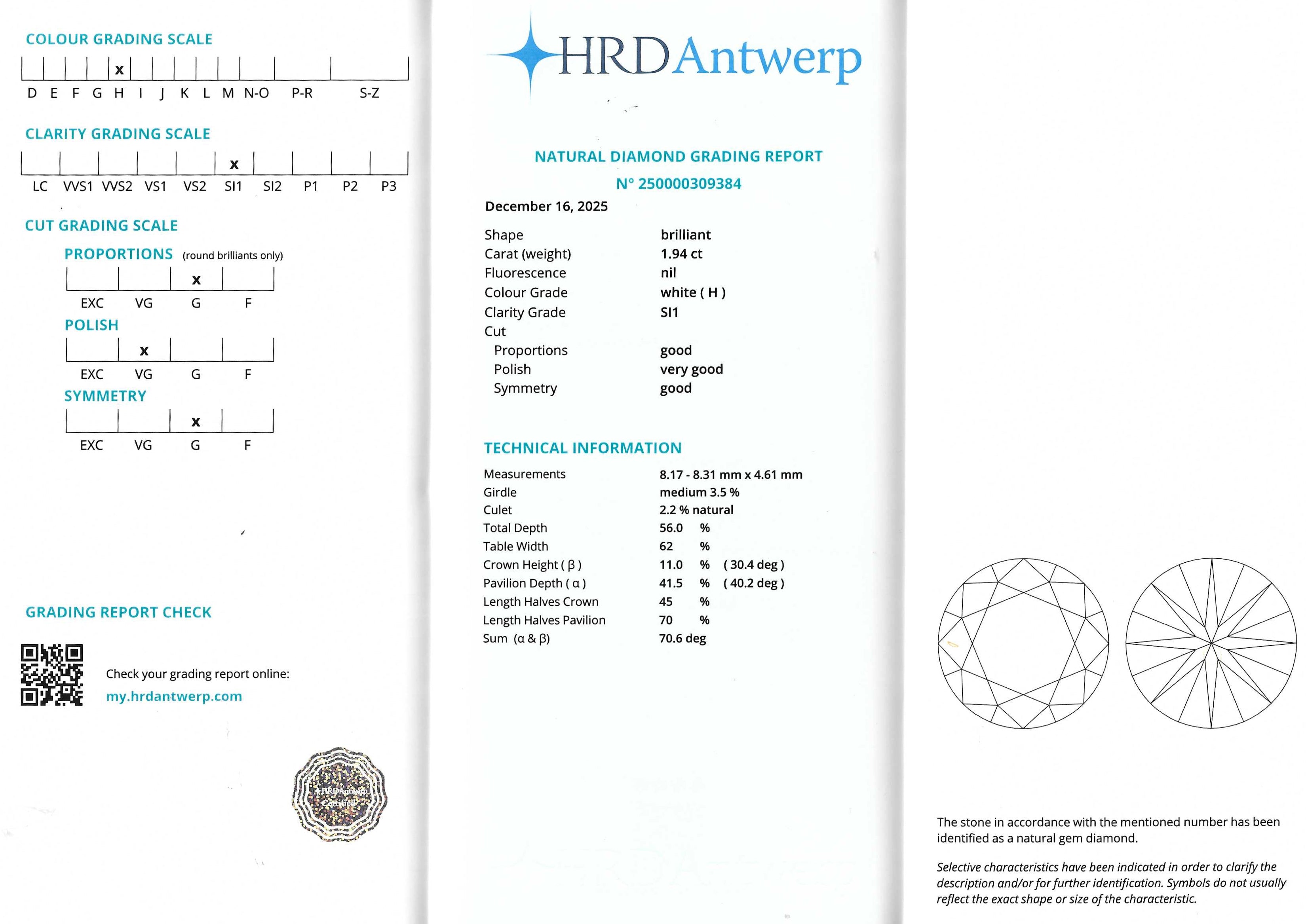 Accompanied a natural diamond grading report from HRD Antwerp.