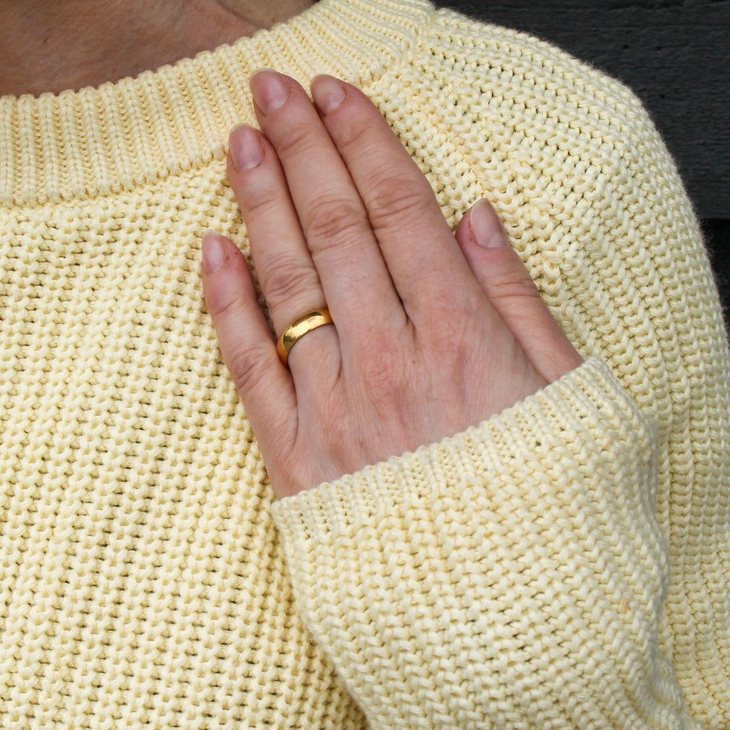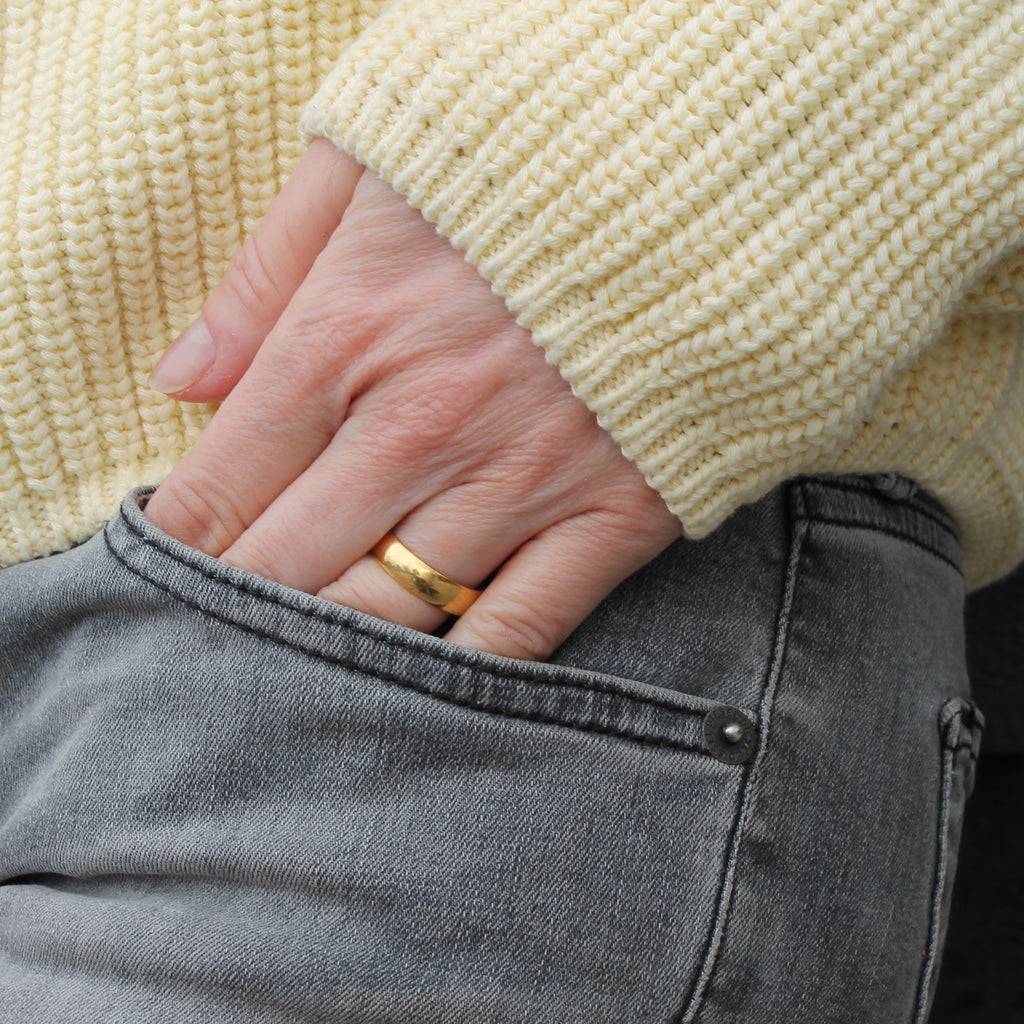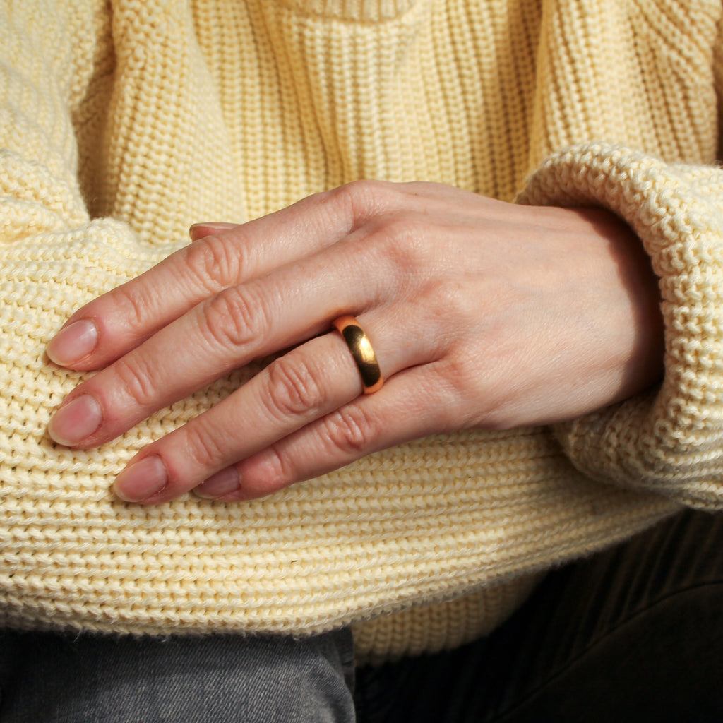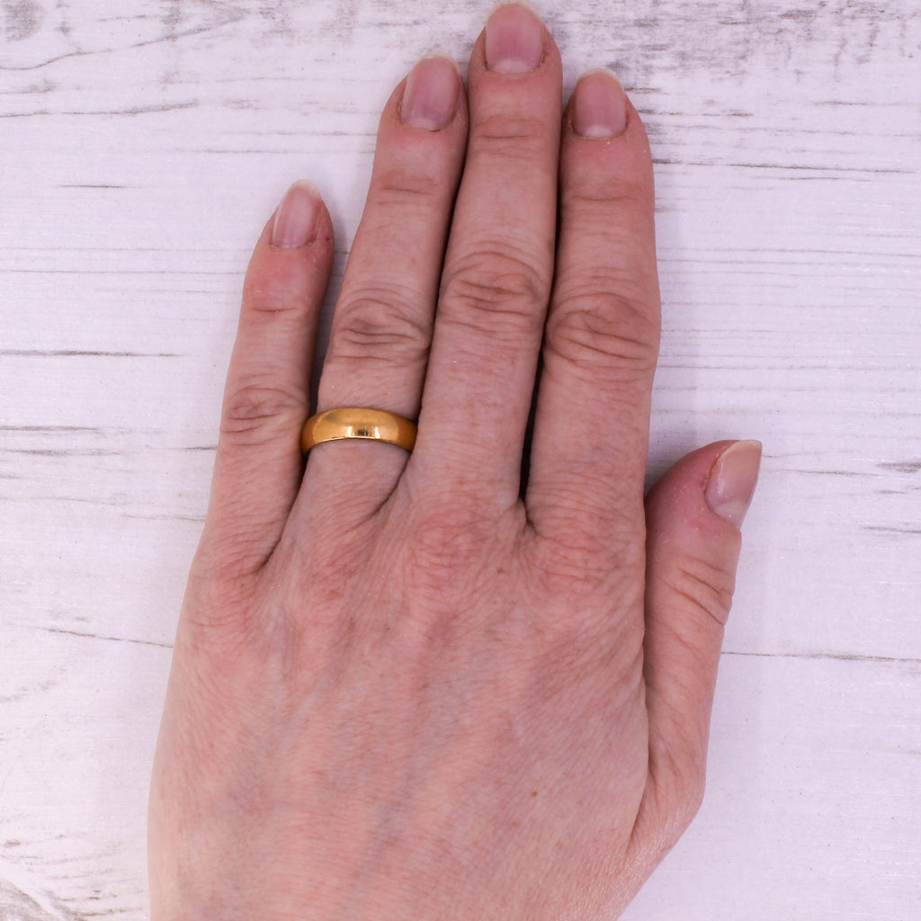 [message]A fine vintage gold wedding band ring. The wide, D-shaped band is crafted in buttery yellow gold. With clear hallmarks from the London Assay, 1967.