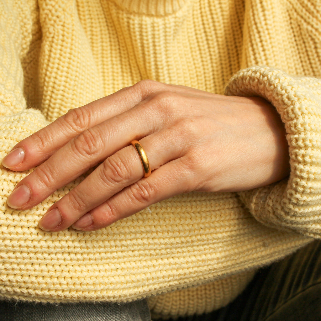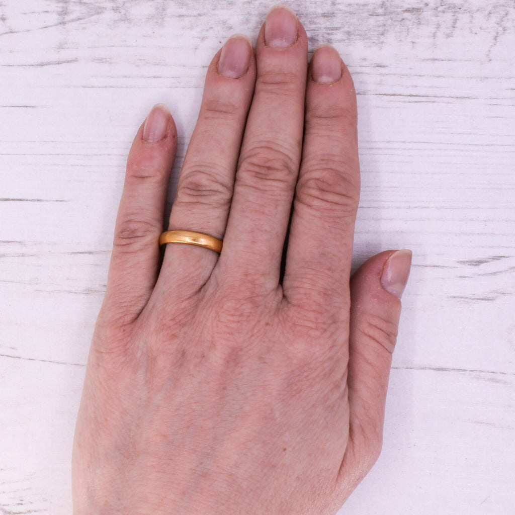 [message]A fine vintage gold wedding ring. The wide, D-shaped band is crafted in warm yellow gold. With clear hallmarks from the Birmingham Assay, 1955.